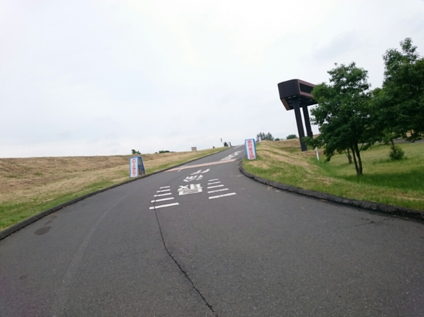 ストレートの先にまた土手越えがあります。緩いカーブになっているので下りは速度注意です。