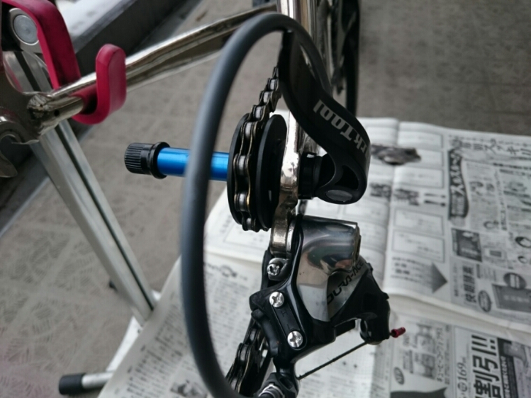 リアホイールを外してしまうとチェーンがダラーンとしてしまい、ディレイラーのメンテやチェーンの洗浄が出来ません。