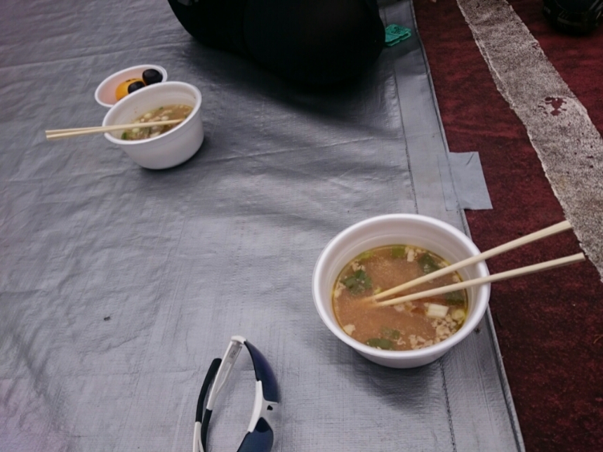 車の合間にちょいちょいと前をパスしつつ平均6%が40~50㎞くらいかな?車速は27㎞平均くらいで登りとここで豚汁をいただき、